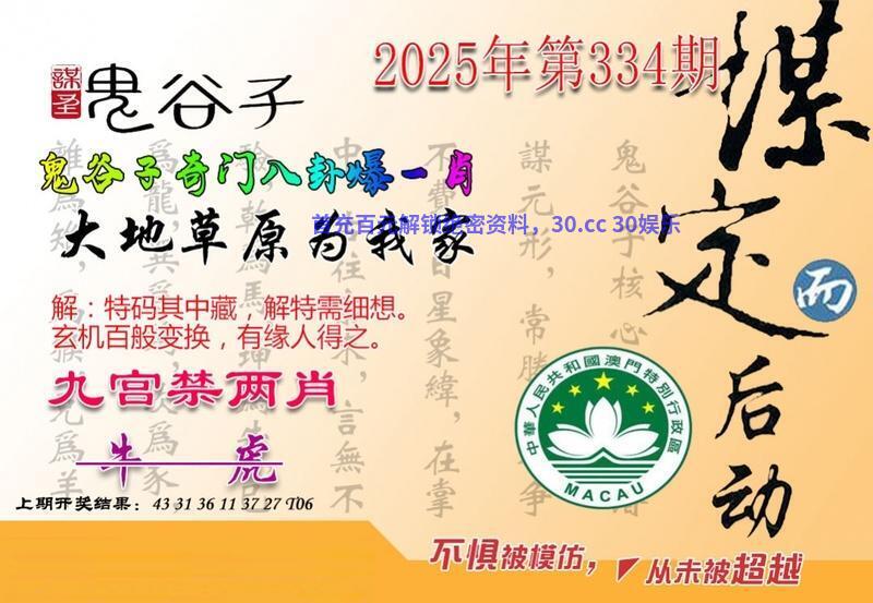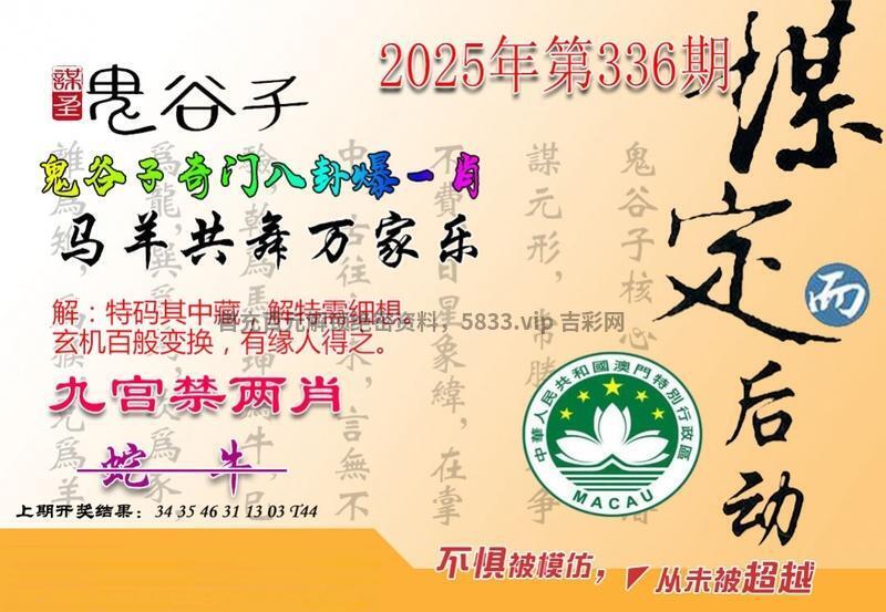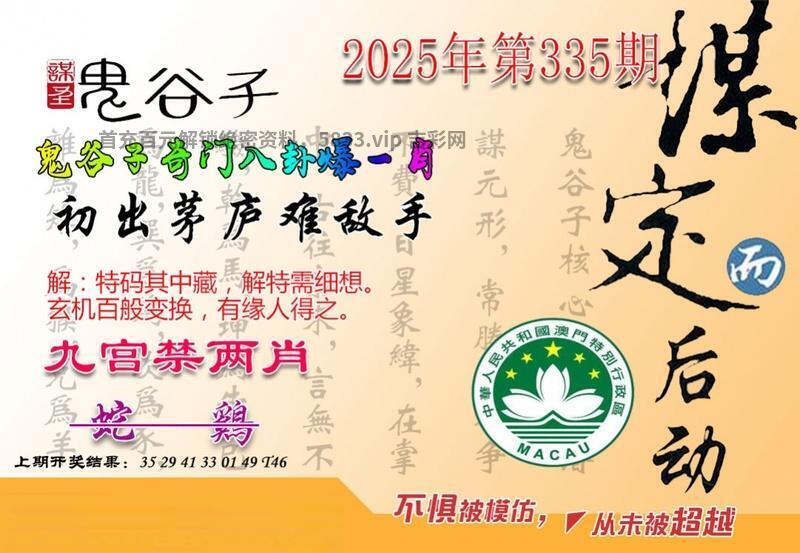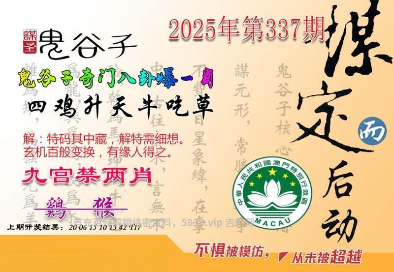 | 338期:澳彩鬼谷子【开:發00】 综合解:资料准备更新中 综合特肖:资料准备更新中 主攻特码:资料准备更新中 |